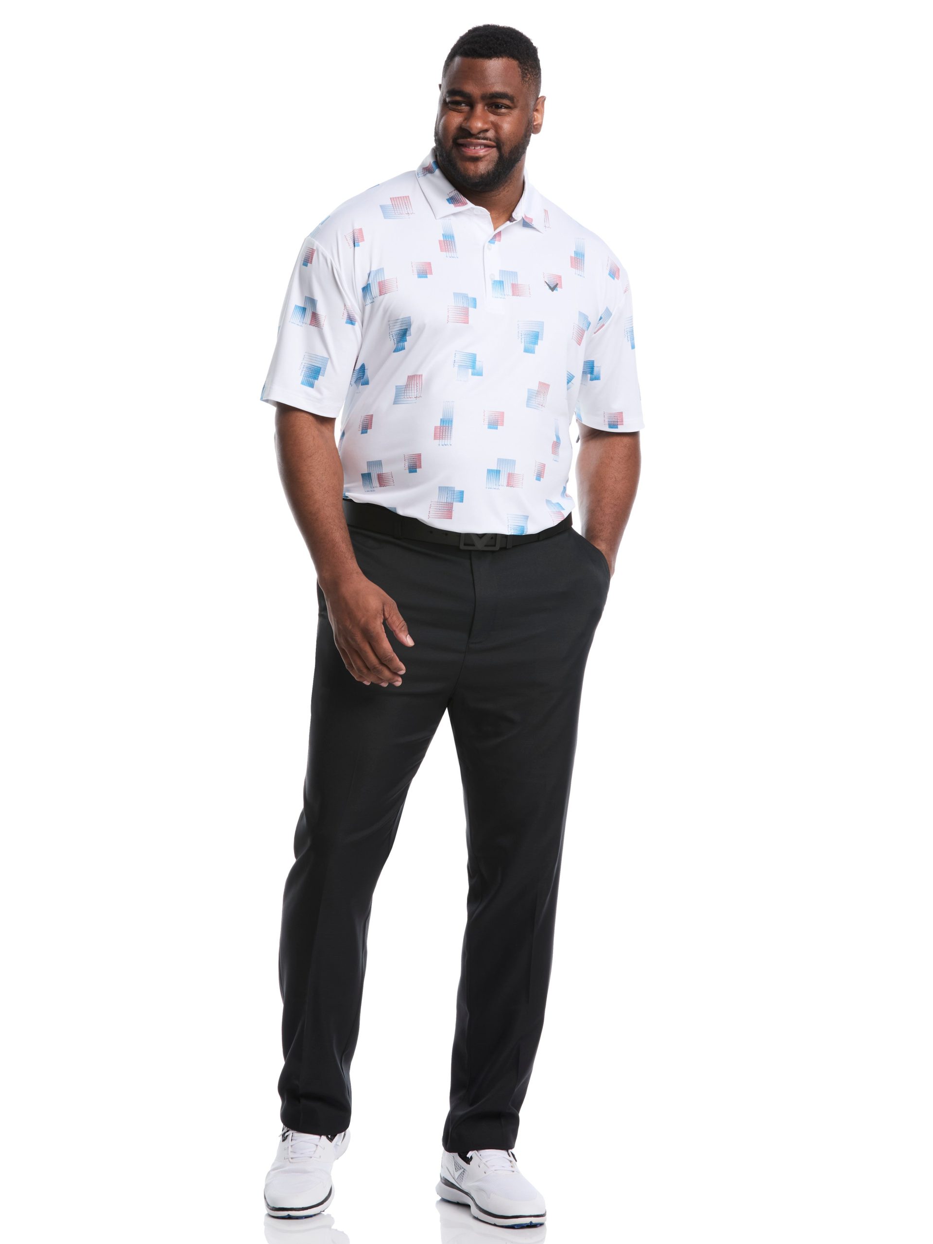 Enjoy comfort and style on the course with the Big & Tall 8 Essential Clubs Print Polo. Its soft. smooth jersey fabric feels great against your skin while Opti Dri? technology keeps you cool and dry. With built-in stretch. you get full freedom of movement for every swing. Plus. the sun protection fabric has you covered under bright skies. Show off your golf passion with the fun 8 club print design??and play your best game in comfort!