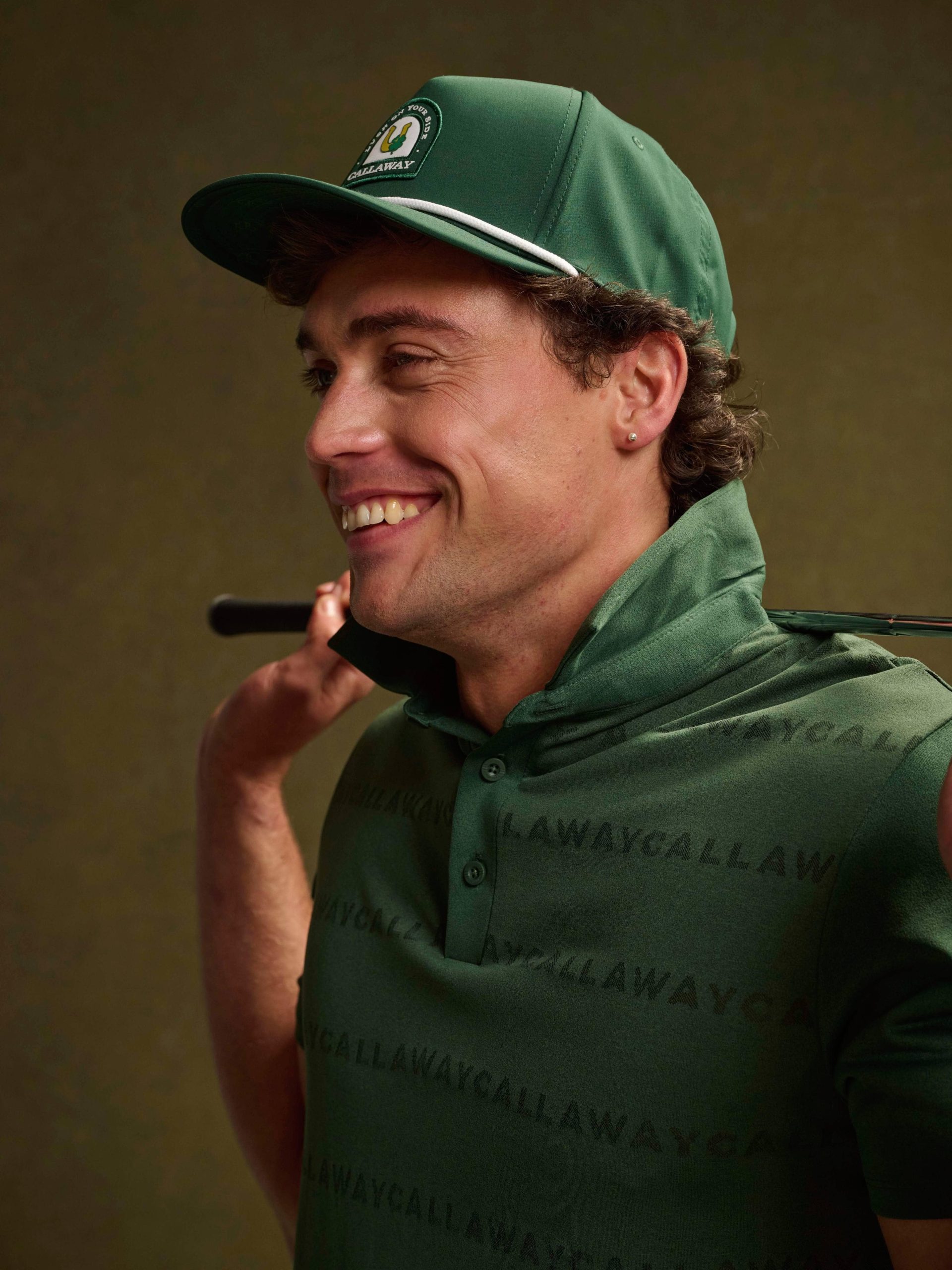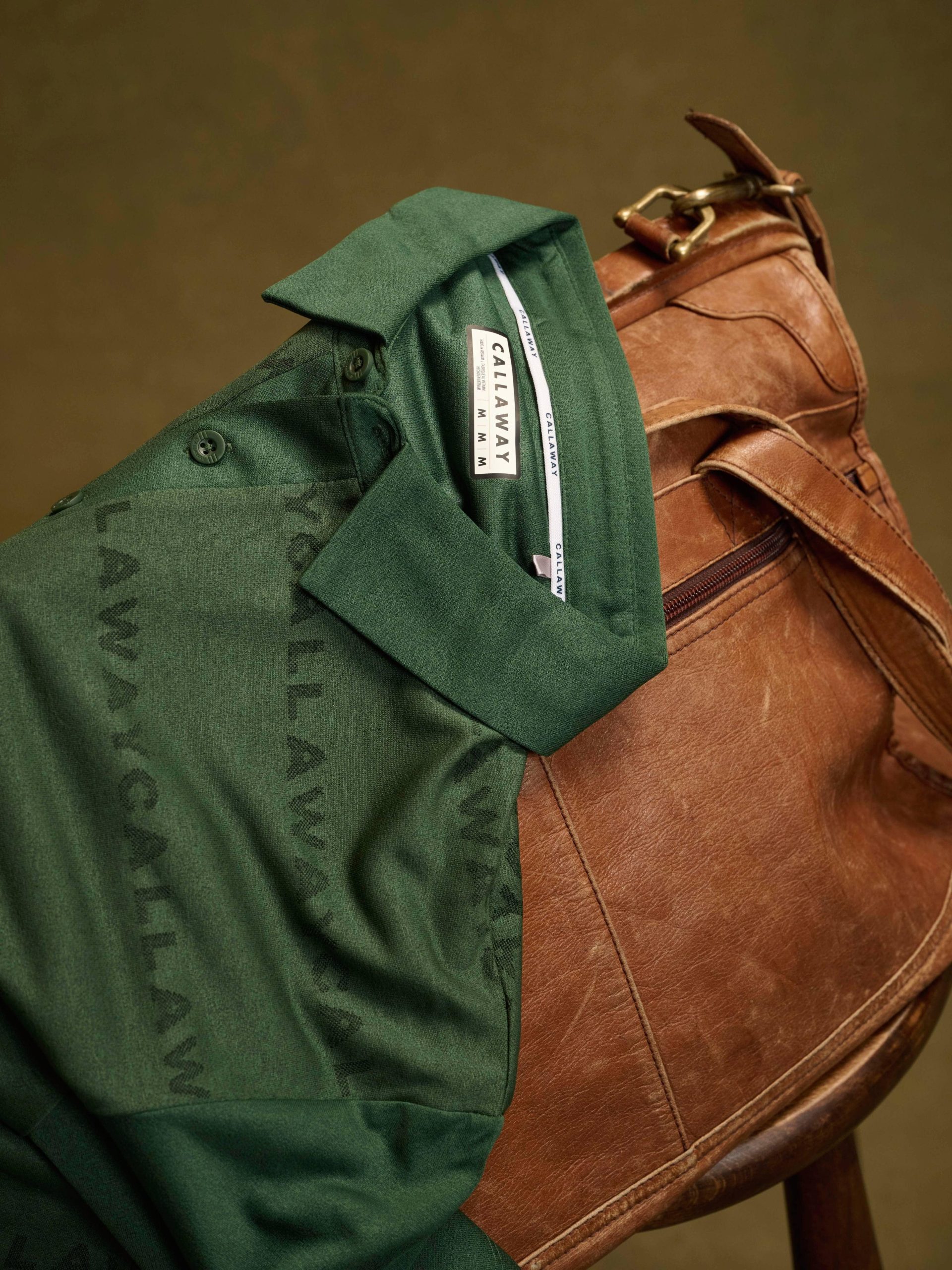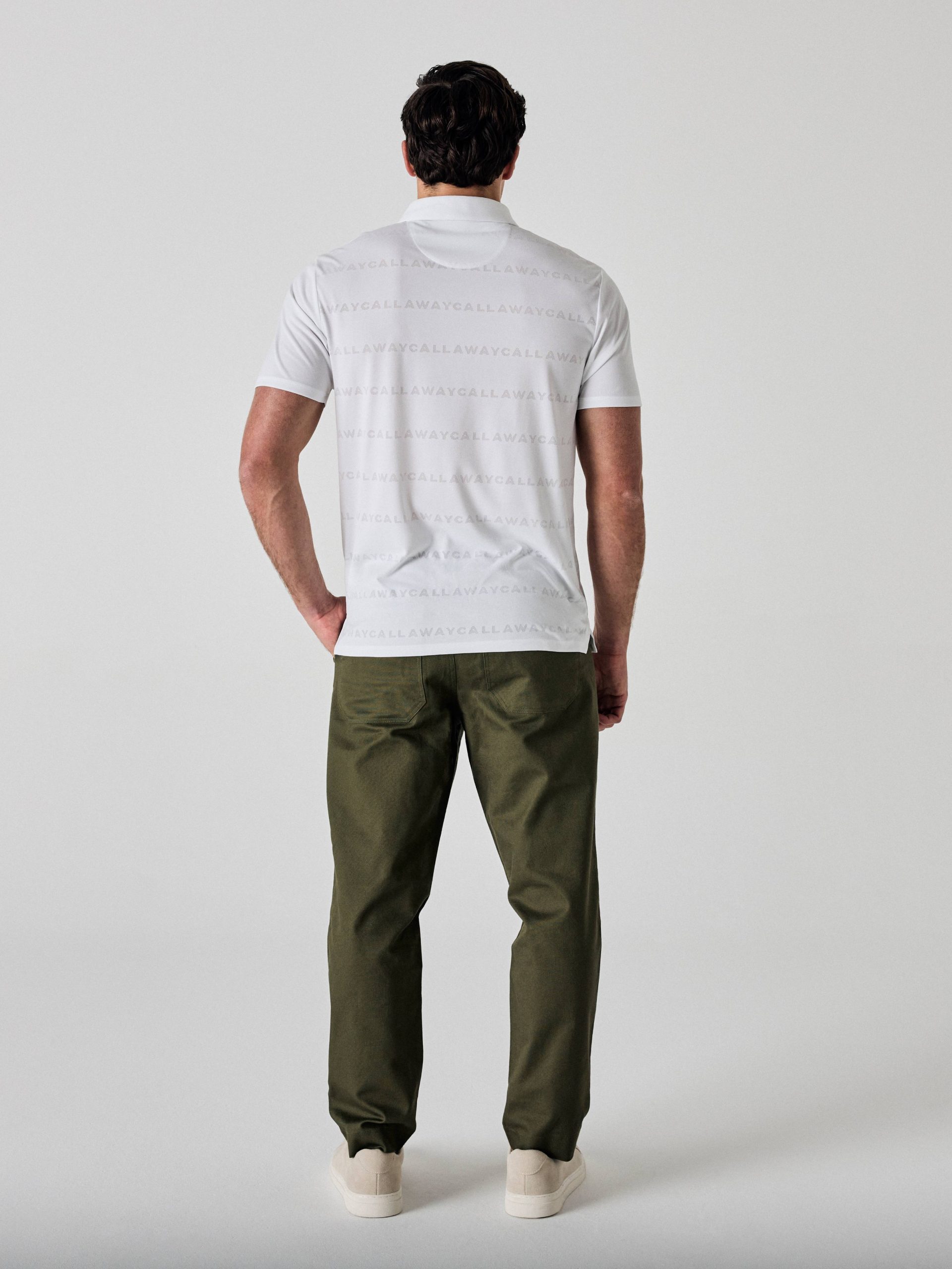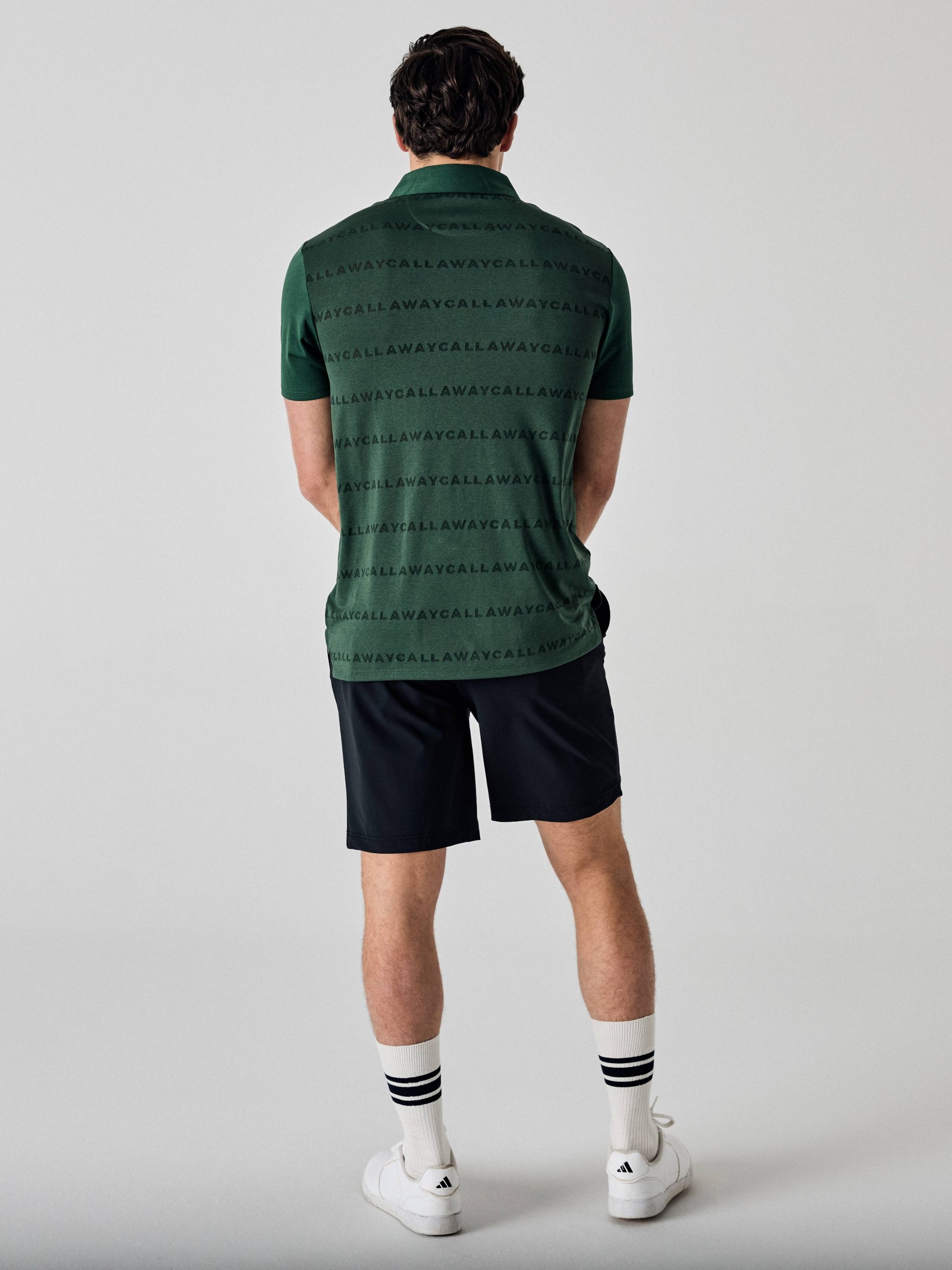 Elevate your athletic wardrobe with this sharp men’s golf shirt from the Callaway Legacy Collection?. The golf polo shirt is crafted from jacquard fabric. which has a raised pattern woven into its surface for a sophisticated textured look. Stylized logos across the fabric add eye-catching flair. while moisture-wicking technology helps to keep you comfortable and dry as you play.