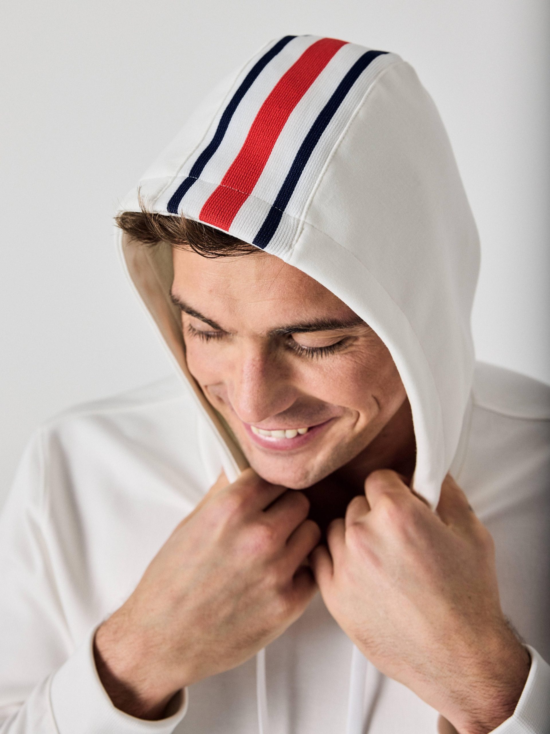 Stay warm and comfortable during cool. windy days out on the course with this athletic hoodie from the Callaway Legacy Collection?. Designed to last. this men’s golf sweater is crafted from durable double knit fabric that stands up to everyday wear and tear with ease. It has a drawstring on the hood to help customize the fit. while a kangaroo pocket makes it easy to warm your hands while you’re waiting for your turn to play. A Triple Track design down the hood and center back and a matching patch on the chest give the design a sophisticated. modern look.