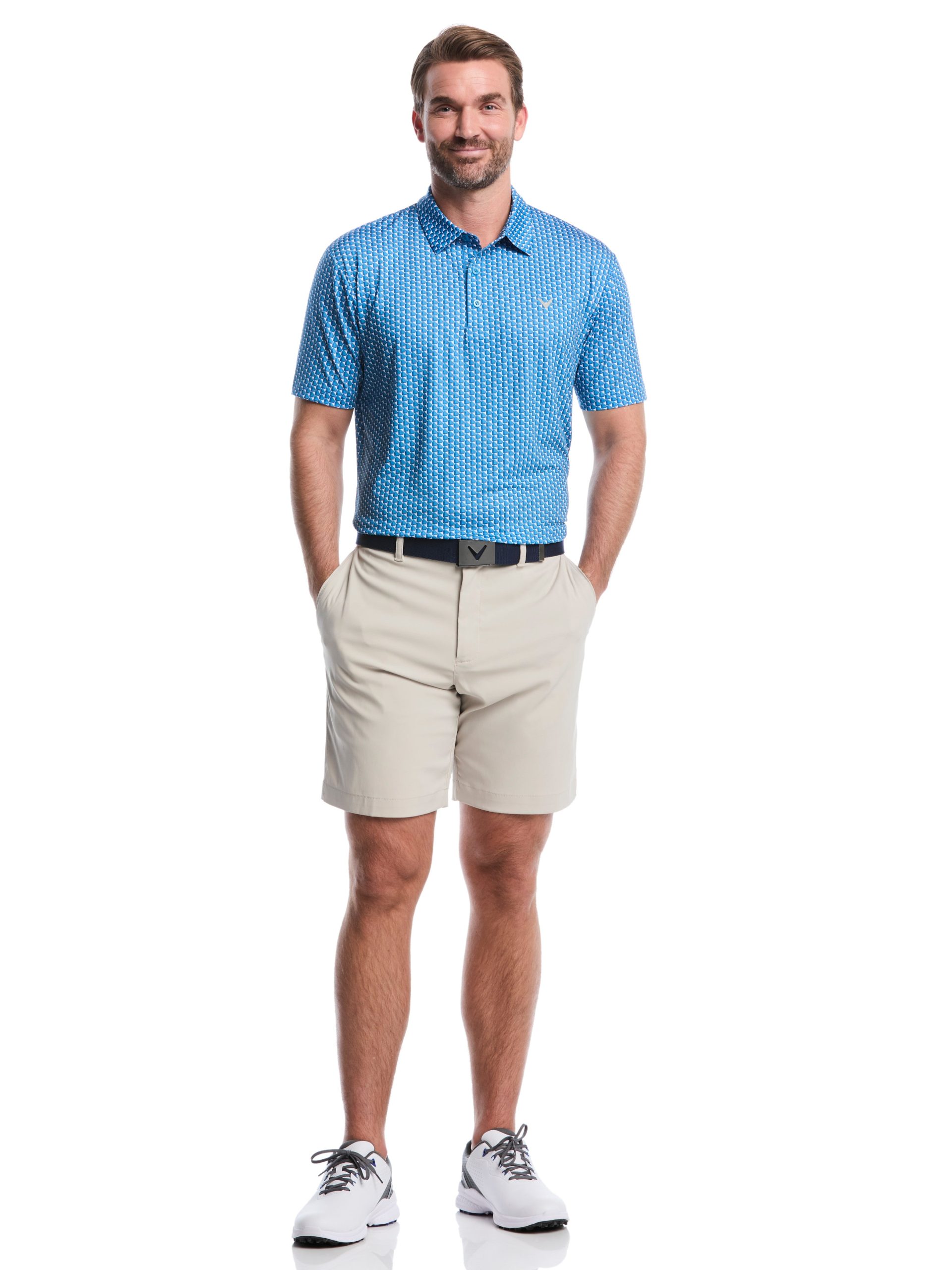 Elevate your golf game in style with the Mens All Over Chevron Geo Polo. Featuring a bold Chevron logo print. this polo blends sporty vibes with a fresh geometric twist. Perfect for the course or casual wear. its comfortable fit and breathable fabric keep you cool while turning heads. Add a playful edge to your golf wardrobe with this standout piece from Callaway.