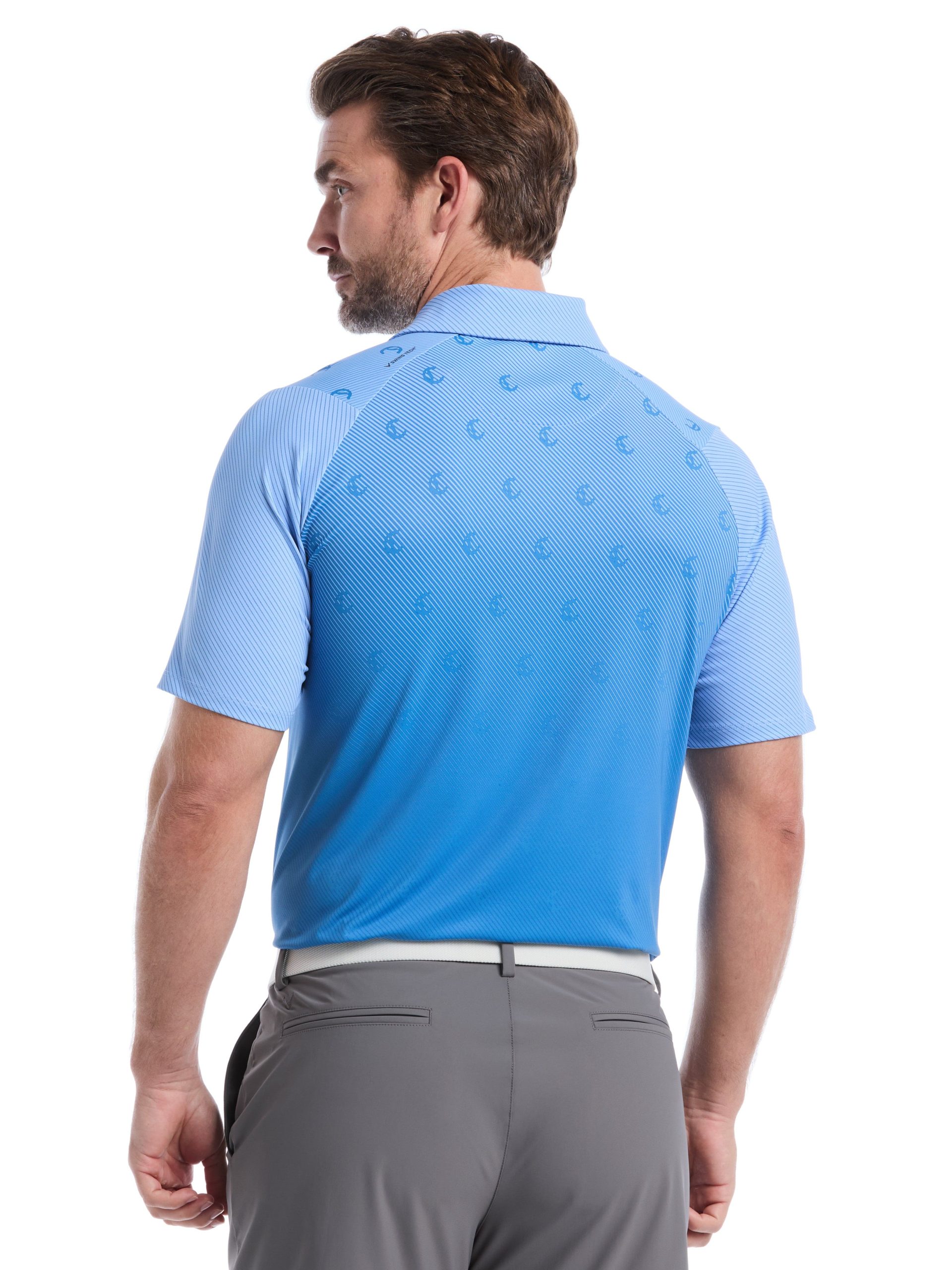 This men’s golf shirt from Callaway Apparel features an engineered C print for a golf shirt that merges style with functional details. The moisture wicking helps keep you cool and dry so you can focus on playing your best. The polyester single-knit polo shirt offers stretch for full range of motion along with Swing Tech? technology so every swing feels effortless. UPF 50 sun protection and recycled materials round out this men’s short sleeve golf shirt’s performance upgrades. An easy-care fabric means this short sleeve polo looks just as sharp straight out of the dryer as it does teeing off.