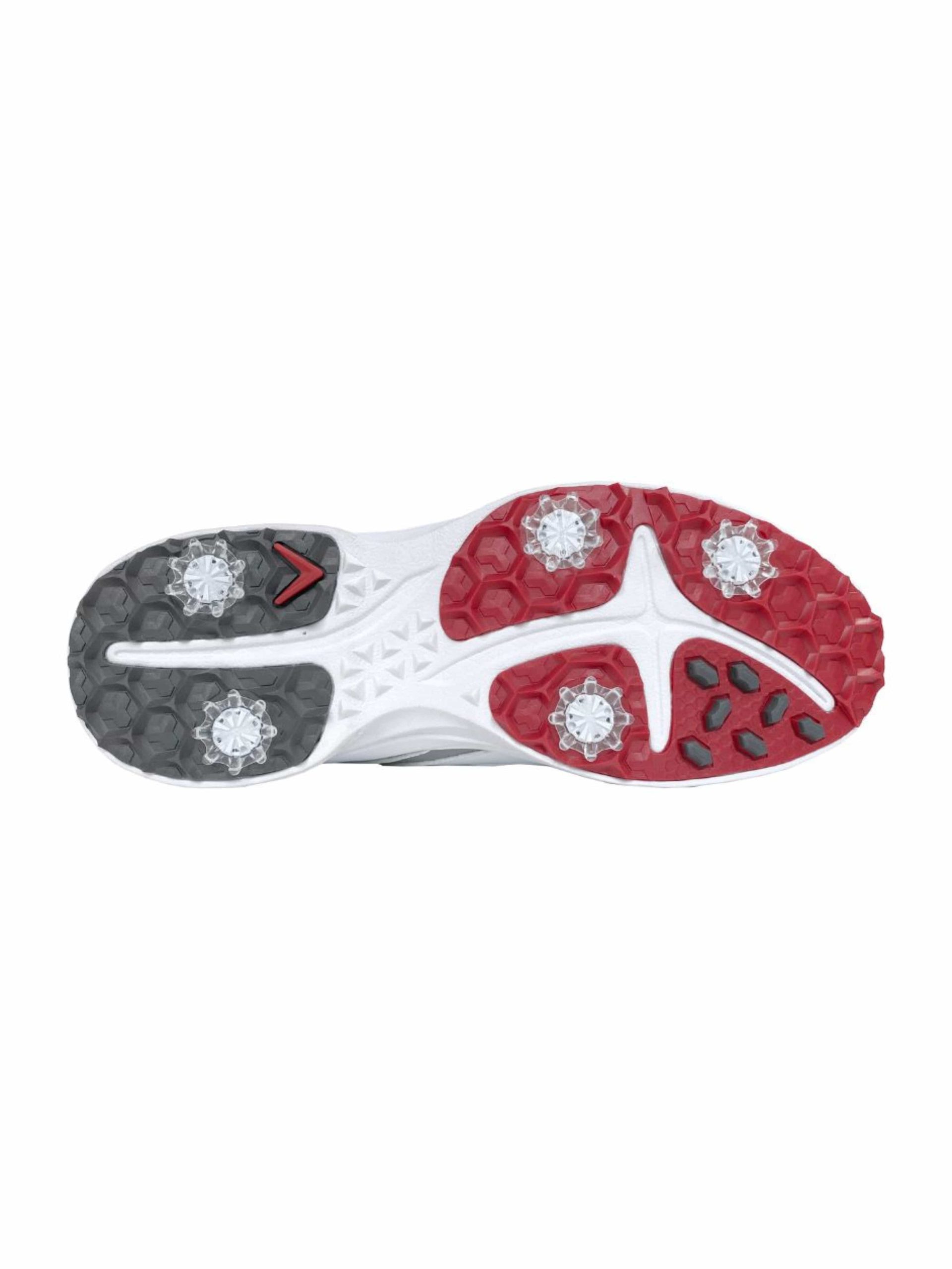 The Callaway men’s Solana TRX v2 offers the ideal combination of lightweight comfort and technical performance. Fast Twist 3.0 removable cleats help you get lower to the ground to improve your power and swing stability. Our Opti-Dri? waterproof microfiber leather creates a barrier against inclement weather. while the Opti-Vent? mesh liner manages heat by generating a breathable inside. The Forged DX? midsole works with your foot’s arch to create a natural walk and comfortable walk.