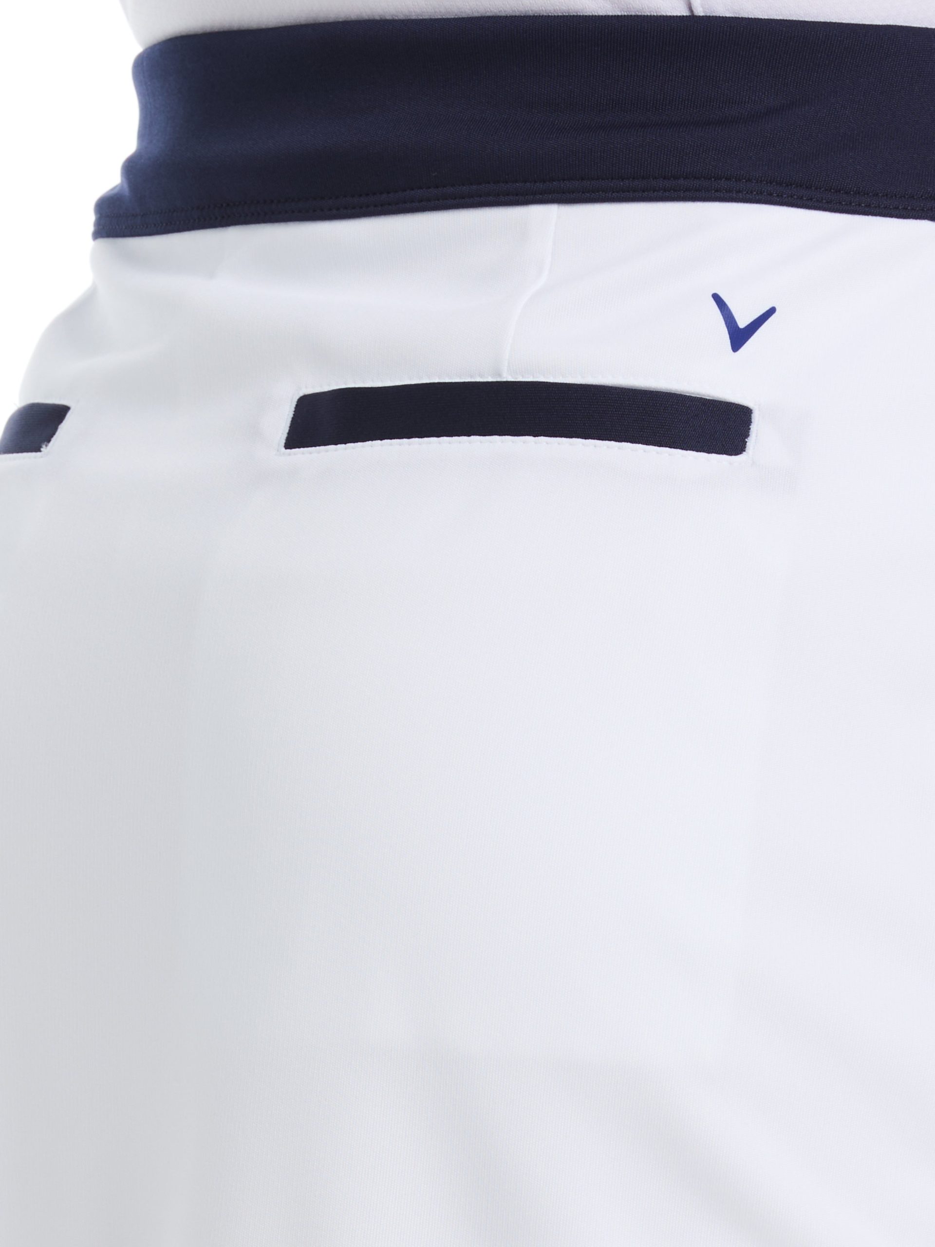 Featuring a flattering wrap design and eye-catching color blocking. this women’s golf skort from Callaway will be a striking addition to your athletic wardrobe. The skort is made from an interlock knit fabric that offers natural stretch to let you bend and twist without feeling constricted. The material has sun protection technology to help block harmful UV rays. and it wicks away moisture to help keep you comfortable and dry. Truesculpt? technology helps to create a smoother. more streamlined silhouette so you can head out onto the fairway looking and feeling your best.